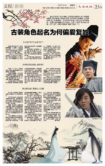 随着一些武侠小说被改编为影视剧,得益于电视媒体强大的传播能力,很多复姓得以大范围进入观众视线,且自带标签,比如令狐冲是放荡不羁的少侠,司空摘星的易容术出神入化。