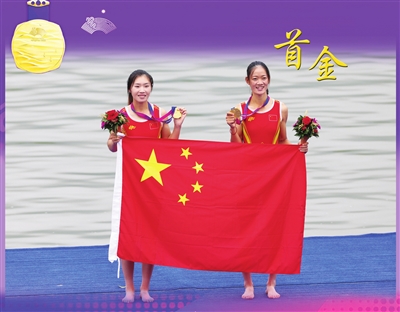 9月24日,冠军中国组合邹佳琪(左)/邱秀萍在颁奖仪式上庆祝。 新华社 发