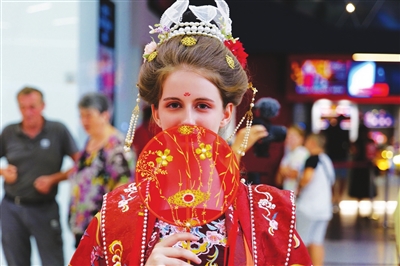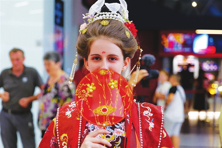 9月23日,在塞尔维亚诺维萨德举行的“汉服节”活动上,一名学生展示汉服。