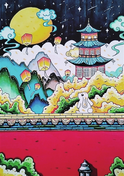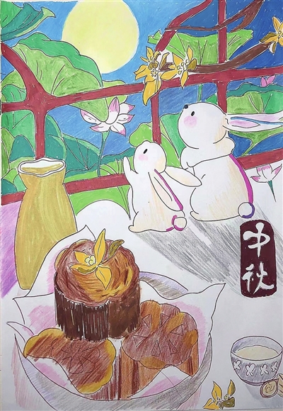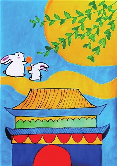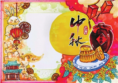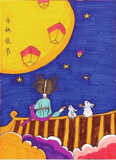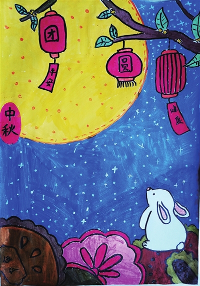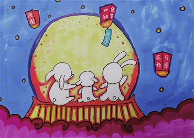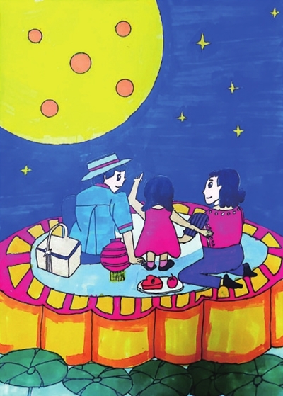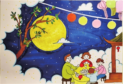 大大的月饼,爸爸吃一小口,妈妈吃一小口,我吃一大口。