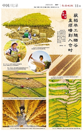 获稻毕工随晒谷 直须晴到入仓时