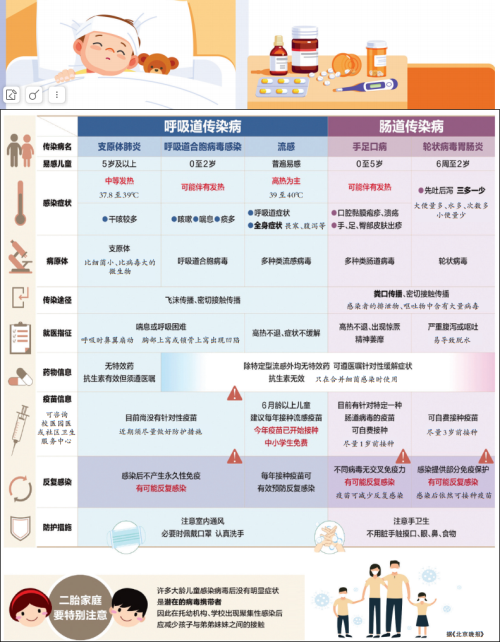 近日,一些孩子出现咳嗽、发烧的症状,引起这些呼吸道感染症状的病因多种多样,有支原体、合胞病毒、流感病毒等。国家疾控局提醒,临近双节人员流动性大,更需要小心预防各类传染病。