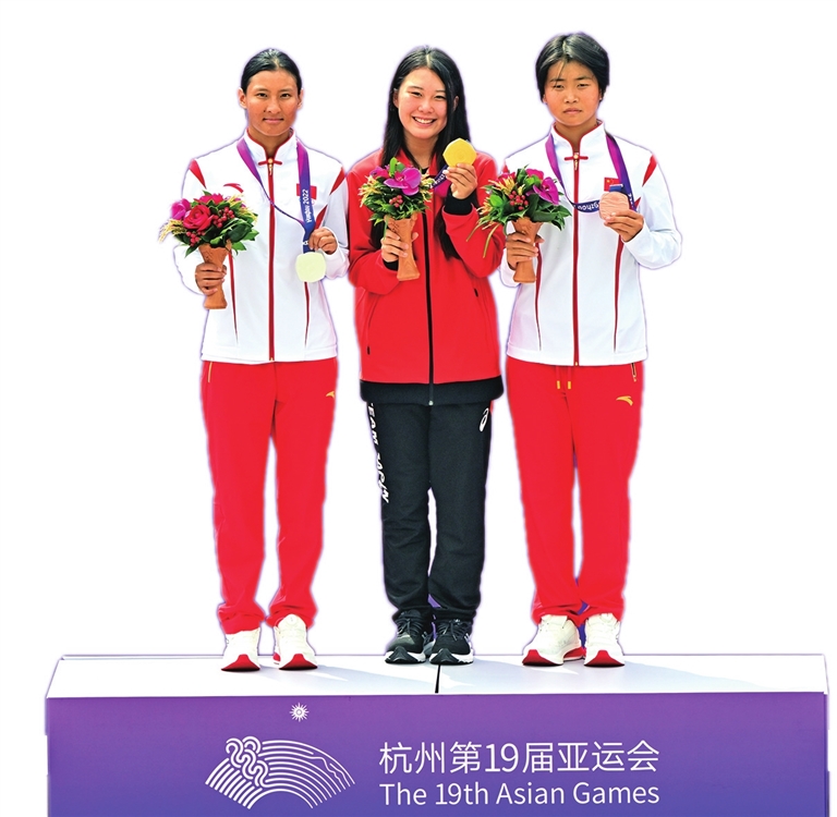 第一次参加亚运会就获得奖牌,毛嘉思表示“不满意”。“我还是想去冲击一下第一名的。”毛嘉思说,“主要是挺紧张,竞技状态也不是最好。”