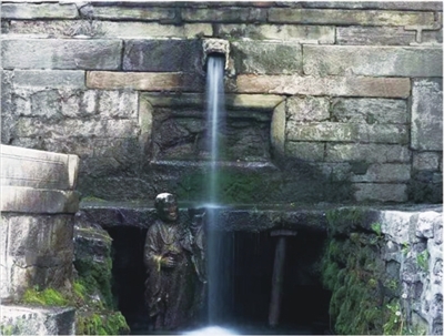 “青瑶叠甃通悬瓮,白玉双龙掣迅霆。”青石砌成的小径一直通到悬瓮山巅,两道玉龙般的泉水风掣雷鸣般地一泻而下。