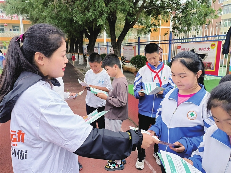 为向青少年普及法律常识,9月26日上午,杜儿坪街道办事处工作人员、河涝湾社区干部和网格员走进虎胜街小学,开展“远离校园欺凌”的主题宣传活动。在现场,大家分发宣传资料,嘱咐孩子们在自己和小伙伴们遇到欺辱、威胁、暴力侵害时要敢于举报。今后,街道和社区也将长期和学校合作,共同预防校园欺凌。