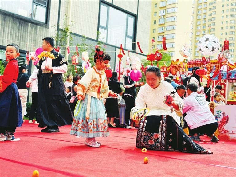 猜灯谜、做手工、投壶、套圈、文艺表演……9月28日,五龙口三社区“情系中秋 传统游园会”活动现场人头攒动,居民们沉浸在热闹喜庆的节日氛围中,共同庆祝中秋佳节的到来。