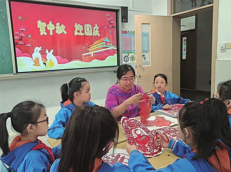 9月28日,迎泽区双塔北路小学开展“巧手剪纸喜迎国庆”主题活动,师生通过制作迎国庆主题的剪纸作品,表达对祖国的热爱和祝福。