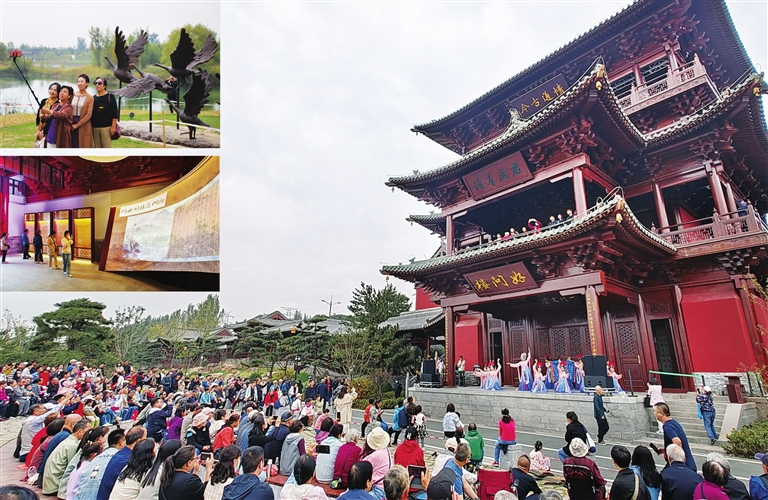 10月2日,太原汾河景区雁丘园秋色宜人,游人络绎不绝。今年国庆假日,以雁丘园为代表的新景点成为省城市民周边游、短途游度假的热门打卡地。 张昊宇 摄