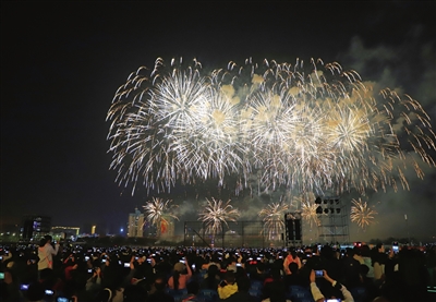第二届国际音乐焰火节分两部分,国庆当日是日本、法国团队同台竞技,10月3日晚澳大利亚团队的《华尔兹玛蒂达》、俄罗斯团队的《莫斯科郊外的晚上》还将再续前赛,最终以焰火的艺术形式、与音乐的匹配度等标准打分,最终评出名次。