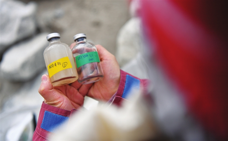 此外,科考队员还首次取得海拔6450米至8200米梯度间隔100米的雪冰样品。