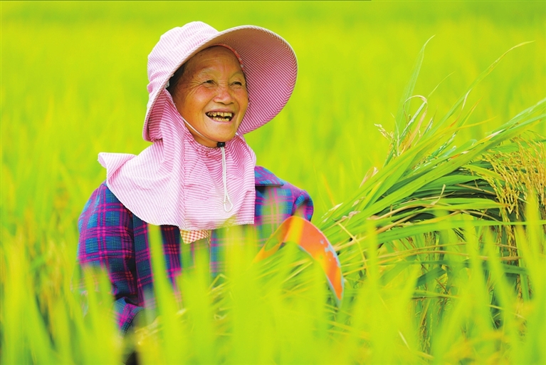 在贵州省黔西市谷里镇建全村,村民收割水稻。