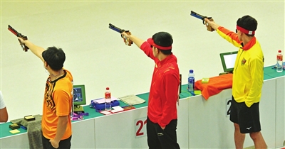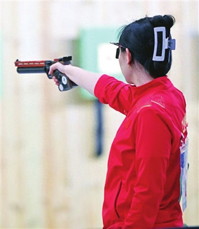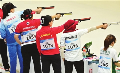 9月29日上午,在射击女子10米气手枪团体赛中,由姜冉馨、李雪和山西选手赵楠组成的中国队夺冠,并以1736环的成绩创造新的亚运会纪录。