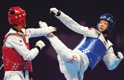 9月28日晚,跆拳道女子67公斤以上级决赛,山西选手周泽琪夺得冠军。