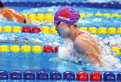 9月27日晚,女子100米蛙泳决赛,山西运动员杨畅以1分07秒01的成绩摘得铜牌。