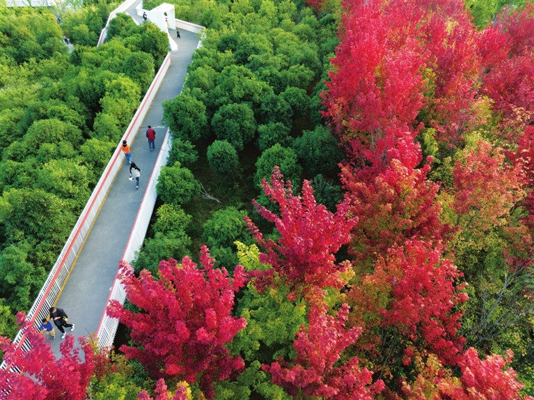 眼下,西安雁南公园里秋景宜人,吸引不少人散步休闲。近年来,西安市新建的各类公园成为城市中美丽的风景线,也为市民提供了丰富的活动场所。