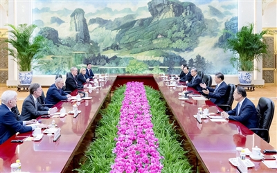 习近平指出,中华文明绵延不断五千多年,始终坚持与时俱进、兼收并蓄、合作交流的和平理念。中国创造了经济快速发展和社会长期稳定两大奇迹,历史性解决了绝对贫困问题,全面建成小康社会,根本原因是找到了一条符合中国国情、符合人民期待、得到人民支持拥护的成功发展道路。中国将继续坚持走中国特色社会主义道路,全面推进中国式现代化,坚持和平发展不动摇,同世界各国一道,推动构建人类命运共同体。欢迎更多美国国会议员访华,更好地理解中国的过去、现在和未来。希望两国立法机构多来往、多对话、多交流,增进彼此相互了解,为推动中美关系稳下来、好起来作出积极贡献。
