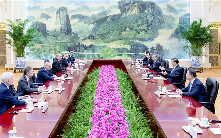 舒默等表示,很高兴访问美丽的中国,感谢中方热情接待,使我们通过此行感受到中国发展的活力和潜力。舒默等介绍了对中美关系有关问题的看法和意见,表示,美中关系稳定发展不仅对美中两国至关重要,也事关世界和平与发展。中国发展繁荣有利于美国人民。美方不寻求同中国发生冲突,不希望同中国脱钩,愿同中方本着开放坦诚、相互尊重的精神加强对话沟通,负责任地管控两国关系,推动美中关系稳定发展。美方期待同中方加强双边贸易投资合作,就应对气候变化、打击毒品贩卖、解决地区冲突等问题加强沟通合作。