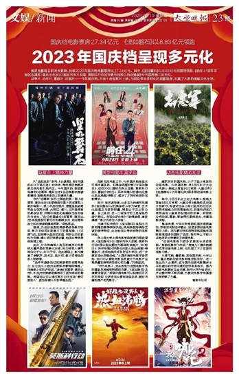 国庆档电影票房27.34亿元 《坚如磐石》以8.83亿元领跑~~~