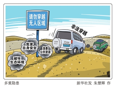 近年来,此类非法穿越无人区事件在一些地区频频上演,有的甚至酿成悲剧。今年7月底,一支自驾车队未经批准穿越新疆若羌境内国家级野骆驼自然保护区,遭遇车辆故障、高温缺水双重困境,其中四名游客不幸遇难。