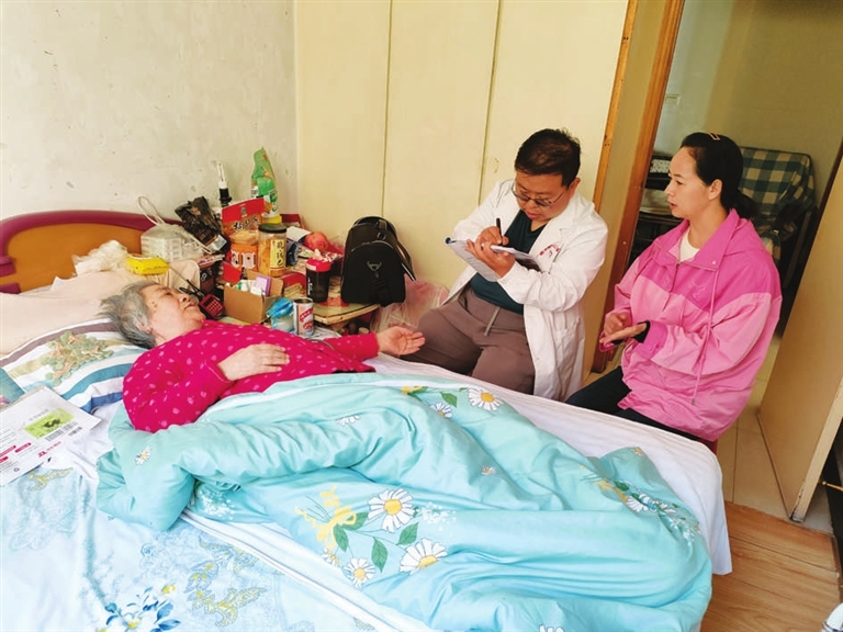 为满足辖区失能、失智高龄老人多样化居家护理需求,10月10日,朝阳二社区联合郝庄镇中心卫生院医护人员,上门为有需要的老人提供护理服务,并为他们建立健康档案,讲解日常饮食、用药、保健等方面的知识,提升老年人的生活质量。 郭晓华 刘苗苗 摄
