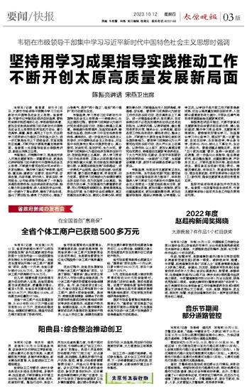 坚持用学习成果指导实践推动工作 不断开创太原高质量发展新局面