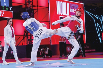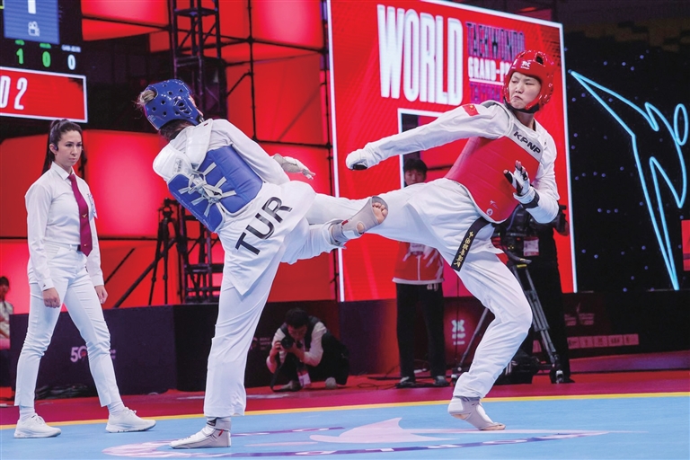 徐蕾(红)斩获女子67公斤以上级金牌。图片由赛事组委会提供