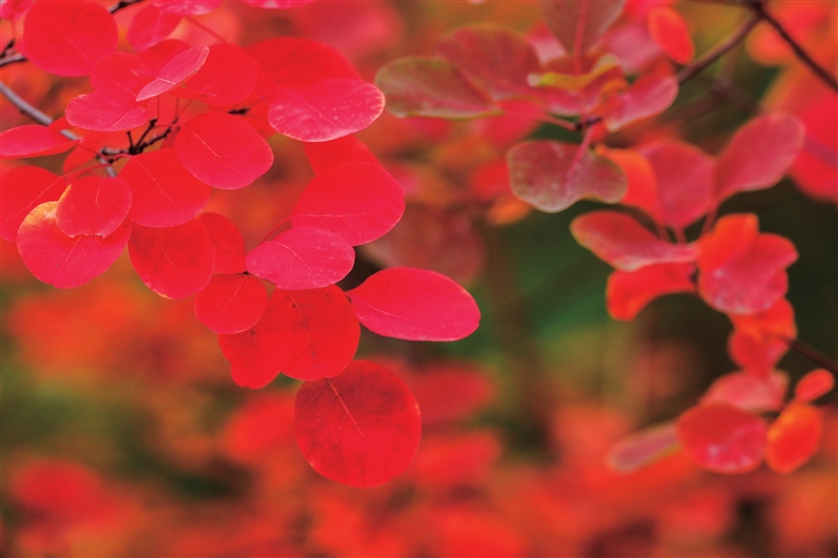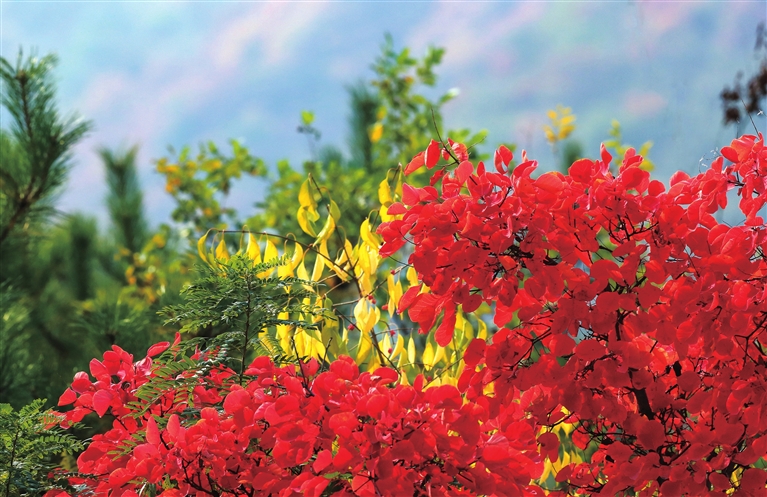 一丛丛五角枫、黄栌、火炬树、爬山虎……只用一种颜色,便把秋天的独特气氛渲染到了极致。