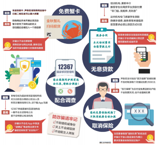 蟹季来临,家里刚好收到一张免费蟹卡;出国度假归来,被“国家移民管理局”通知“涉嫌违法”;求职季上培训班,机构极力推荐用“零门槛、无利息”的贷款付费……当心!这些都是当前最流行的诈骗方式。如何识破套路,避免被骗?