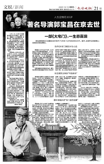 著名导演郭宝昌在京去世