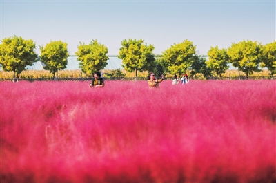 10月16日,清徐县徐沟镇西怀远村粉黛乱子草正值花期,成片的粉红花海如梦似幻,吸引游客前来观赏。