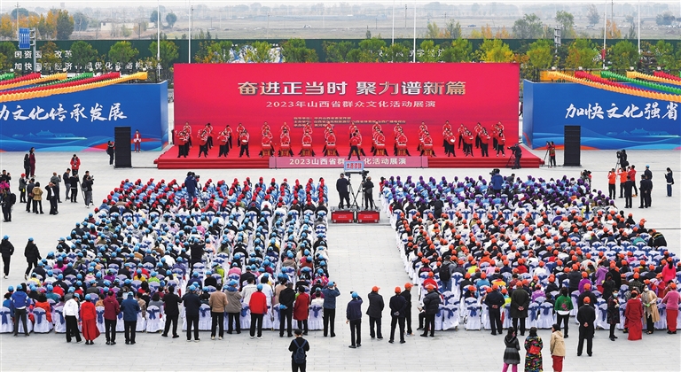 10月19日,第六届山西文化产业博览交易会在山西潇河国际会展中心开幕。图为群众文化活动展演。记者 牛晨阳 摄