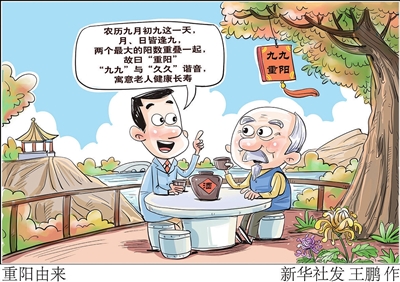 农历九月初九这一天,月、日皆逢九,两个最大的阳数重叠一起,故曰“重阳”,也叫“重九”,且“九”“久”谐音。魏文帝曹丕在《九日与钟繇书》里说,“重九”系因“俗嘉其名,以为宜于长久”。时至今日,人们依然将“九”视为“天长日久”的象征。