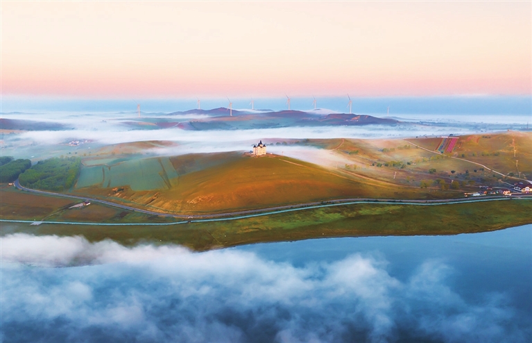 9月10日拍摄的河北省沽源县天鹅湖景观。