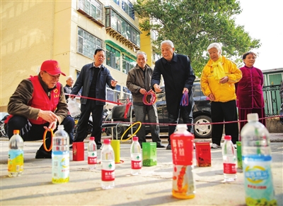 10月23日,太原三监老干科举行重阳节趣味运动会,通过“投壶”“沙包”等趣味活动,让老同志们享受到健康运动的快乐,度过一个欢乐的节日。 王韵菲 摄