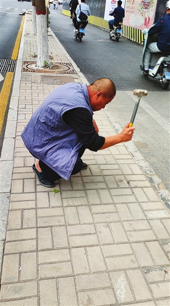 居民滑东途经湖滨广场东侧青年路便道时,发现地面上有不少残留的地钉。担心绊倒行人,他试图将钉子拔出,尝试数次都未成功。之后,他回家拿来锤子将地钉一一锤平,暂时消除了安全隐患,保障了居民和路人出行安全。之后,他又到社区向网格员反映,希望社区联系相关部门,彻底消除上述隐患。