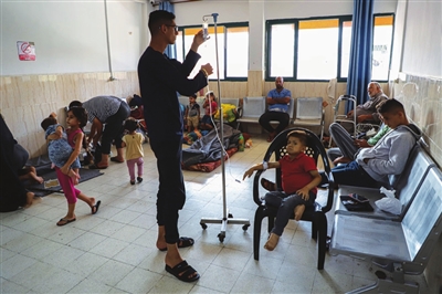 10月22日,在加沙地带南部城市汗尤尼斯的纳赛尔医院,医务人员救治在以色列空袭中受伤的巴勒斯坦人。