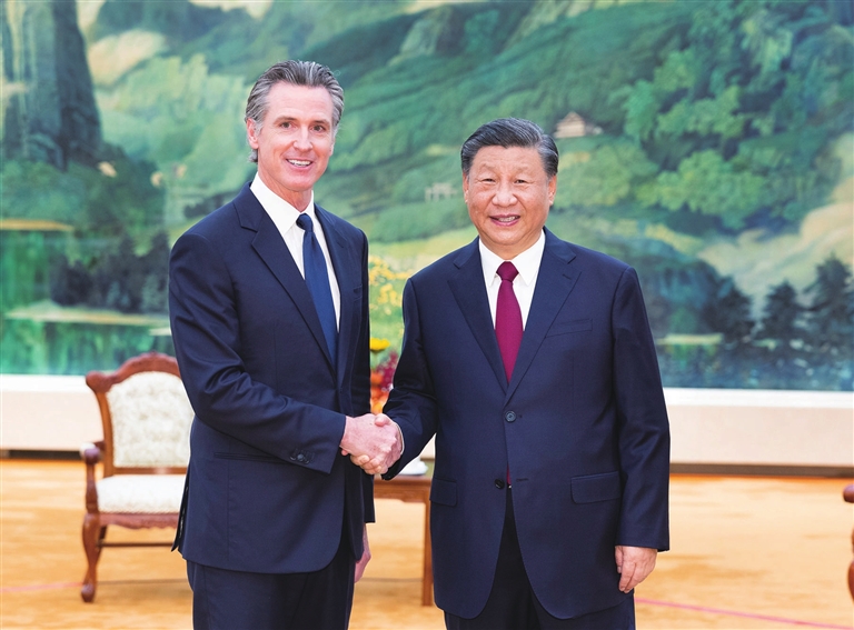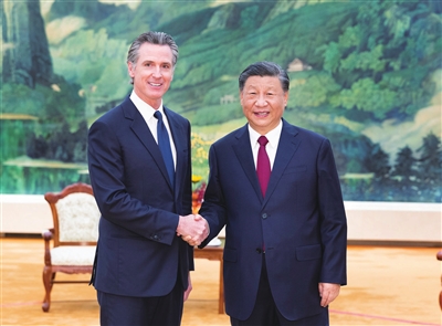 习近平愉快地忆及曾经访问加利福尼亚州的情形,介绍了中国绿色转型以及有关地方发展情况。习近平指出,发展好中美关系,需要汇聚各方力量。中美关系基础在民间,希望在人民,未来在青年,活力在地方。我高度重视并支持中美各界交往和地方合作。希望你此访增进双方相互了解,为扩大中国同加州合作、推动中美关系健康稳定发展发挥积极作用。中美在绿色发展、应对气候变化等领域合作潜力巨大,双方完全可以加强这方面合作,将其打造成中美关系发展新亮点。