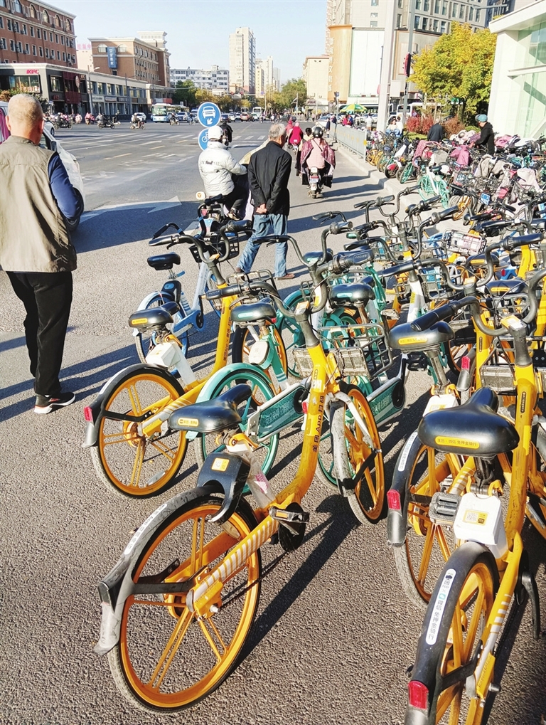 拍摄经过:10月26日,我在双塔西街与解放南路交叉口东北角看到,非机动车道上停满了共享单车,影响路人通行,希望相关部门加强管理,也希望市民提高素质,有序停放共享单车。