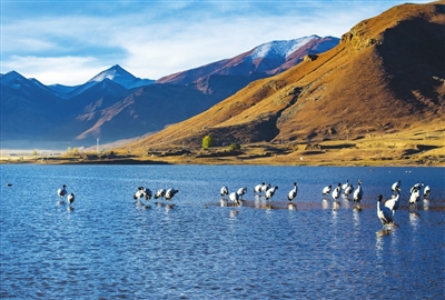 10月下旬,西藏自治区拉萨市林周县迎来2023年第一批越冬黑颈鹤。它们将在这里一直待到来年三四月份。黑颈鹤是国家一级保护动物,主要栖息在海拔2500米至5000米的高原、草甸、沼泽地带。拉萨北部的林周县平均海拔约4200米,是黑颈鹤的主要越冬地之一。