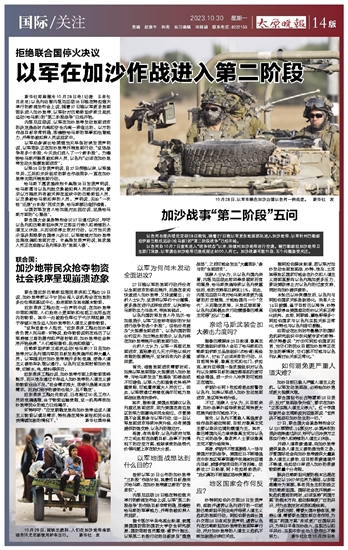 按照以军20日公布的加沙地带“三阶段”作战计划,其最终目标是消灭哈马斯、在加沙地带建立新的“安全政权”。