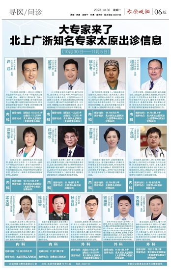 大专家来了 北上广浙知名专家太原出诊信息