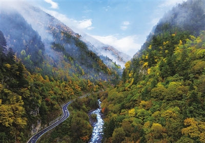前往党岭村的乡村旅游公路蜿蜒在高山峡谷中。