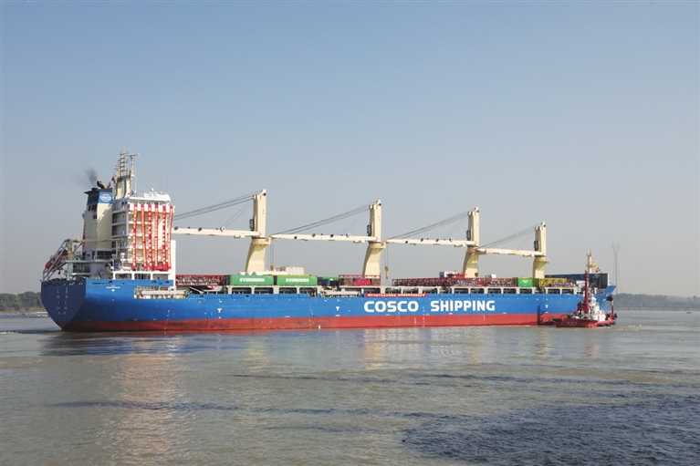 10月28日,起航前4天,装满科考设备、食品等物资的集装箱被陆续吊运上船,紧张而有序的备航工作进入最后阶段。