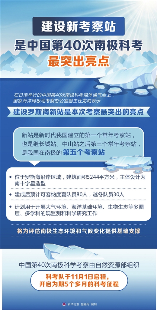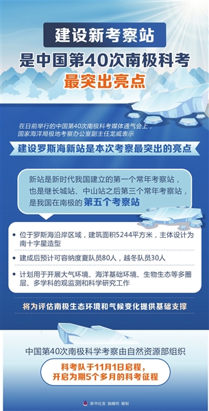 “该站为我国首个面向太平洋扇区的考察站。”中国第40次南极科学考察队罗斯海新站队队长王哲超说,“新站建成后,考察队将以此为依托,开展大气环境、海洋基础环境、生物生态等多圈层、多学科的观监测和科学研究工作。”