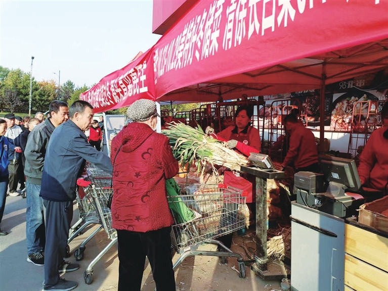 “今年的冬储菜销售火爆,大家的购买热情非常高。”美特好滨河店的工作人员,一会儿是搬运工、一会儿是讲解员、一会儿又是导购,他们耐心向顾客讲解着各类冬储菜的产地、价格、口味等问题,一边把顾客购买的大葱、白菜、土豆成袋成捆地搬上秤台称重。拉杆箱、自行车、电动车、汽车……来买菜的市民也是各类运菜工具一应俱全,大家呼朋引伴、成群结队,从早到晚烟火气十足。