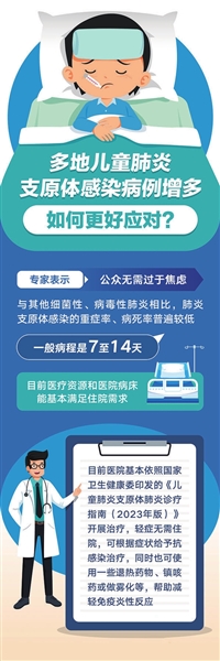 专家表示,目前医院基本依照国家卫生健康委印发的《儿童肺炎支原体肺炎诊疗指南(2023年版)》开展治疗,轻症无需住院,可根据症状给予抗感染治疗,同时也可使用一些退热药物、镇咳药或做雾化等,帮助减轻免疫炎性反应。