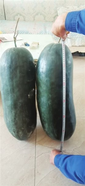 11月初,眼看昼夜温差大,而且瓜藤上的叶子也已发黄,74岁的潘柱光老人决定,将两个大冬瓜摘下抱回家。这一下,左邻右舍都看到了,潘大爷居然抱着两个大冬瓜回了家。有人问他,为什么一下子买两个这么大的冬瓜。潘大爷回答:“不是买的,是种的。”经过测量,两个大冬瓜的“身高”均为71厘米,“腰围”70厘米左右,一个重21.5公斤,一个重19公斤。