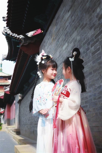 “老板,我们几个想在古县城里拍一套汉服照。”10月22日一大早,在位于太原古县城西街上的一家汉服店内,店主梁素梅刚开店门,便迎来专程从北京慕名而来的三位女大学生。梁素梅热情地招呼着,帮瘦小苗条的女孩挑了件淡黄色的对襟襦裙,为身材较丰满的女孩挑了件粉色的齐胸襦裙,给皮肤较暗的女孩挑了件蓝色的曲裾深衣。身穿汉服的年轻女孩们,漫步古县城,在清明上河图数字展览馆实景感受北宋市井的繁荣,到宫囍龙凤呈祥主题馆沉浸式体验皇帝大婚,领略“一城看山西,一街五千年”的历史文化底蕴,感受着历史的温度。梁素梅告诉记者,喜欢汉服的顾客大多数是“90后”和“00后”。随着太原古县城的知名度越来越大,游客纷至沓来,她的汉服店也成了网红店。