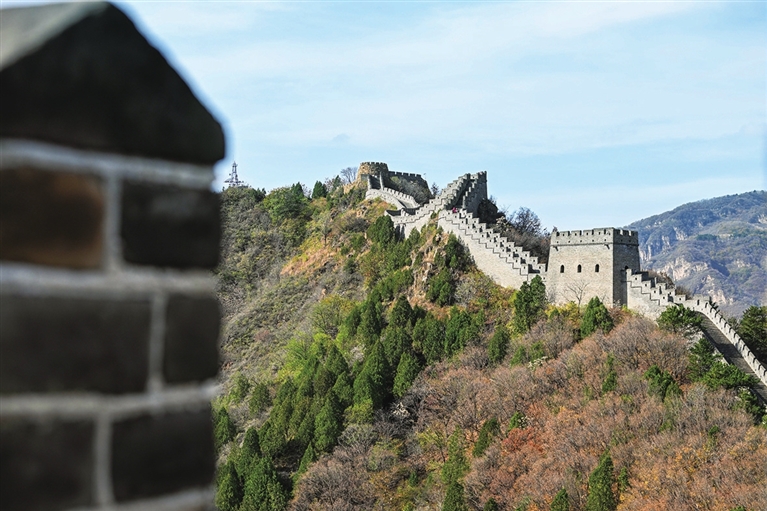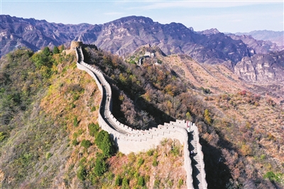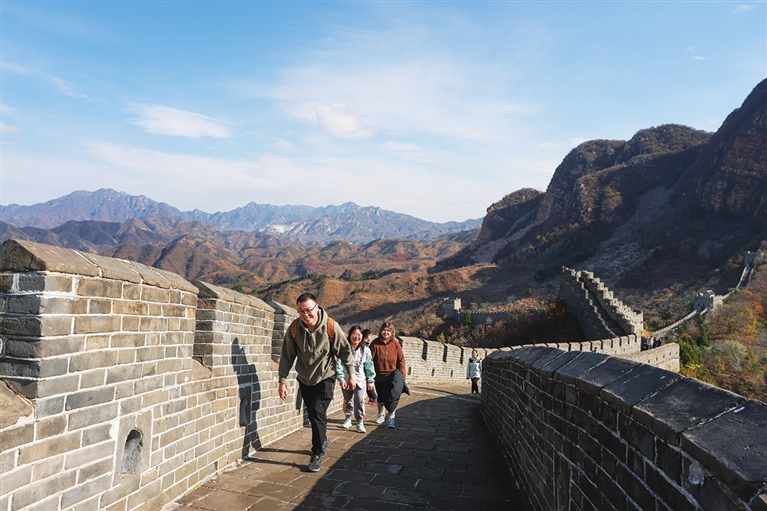 11月6日,游人在天津市蓟州区黄崖关长城太平寨段游览。