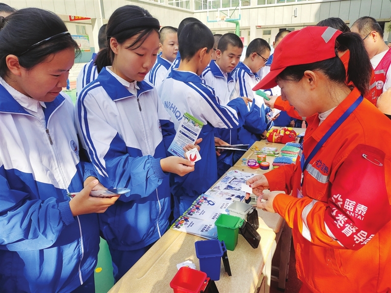 “垃圾分一分,环境美十分!”近日,宁化府社区工作人员和辖区环卫人员,来到南海中学铜锣湾校区开展“积极参与垃圾分类,共同呵护卫生城市”宣传活动。让青少年从小树立环保意识,了解垃圾分类,引导更多人做垃圾分类宣传者、践行者和监督者。